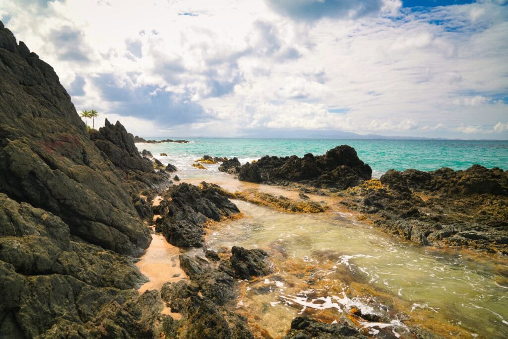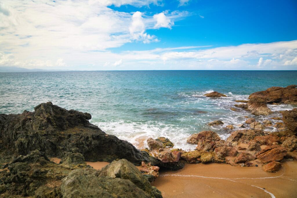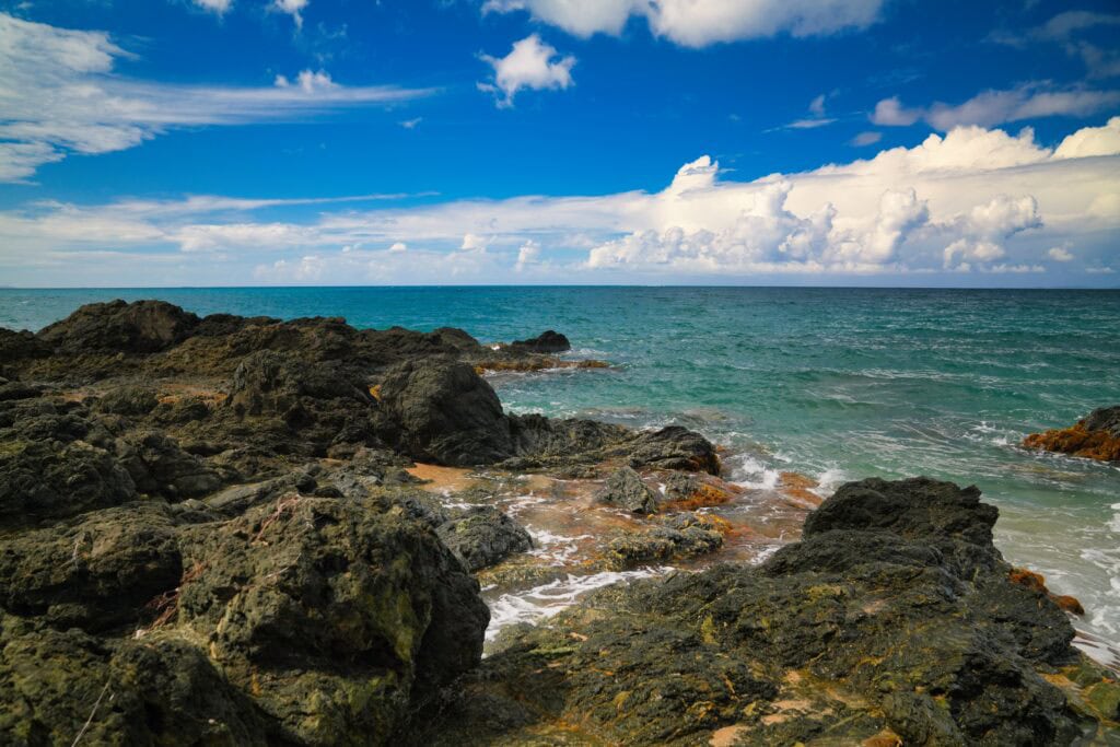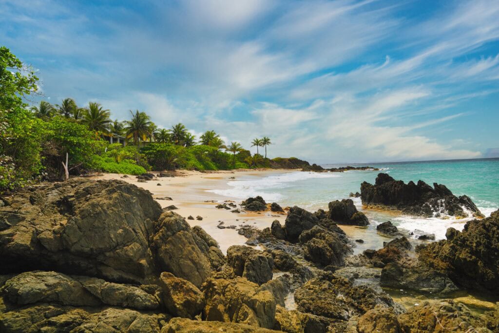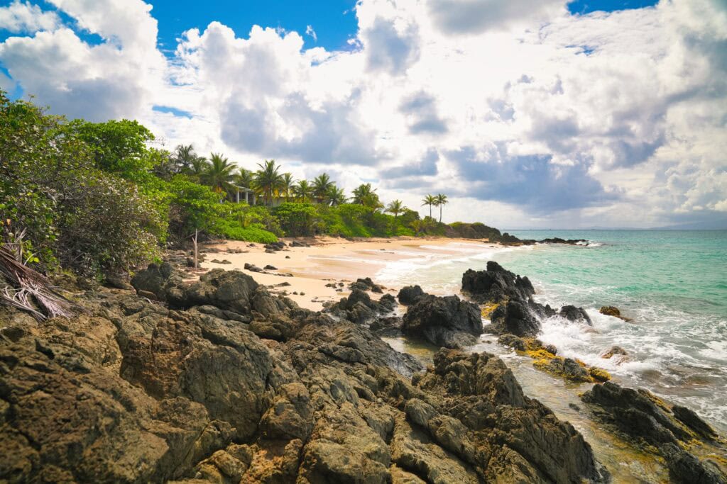 This beach is really a pair of two half moon beaches. They rest in front of the W resort, or what remains of it… damaged beyond repair by hurricane Maria the once beautiful resort now quietly decays more and more each year. It very unlikely you will see anyone else on these two beaches. They are not easily accessible. The best way I have found is to start at El Gallito beach and walk east over the rocks. Once on the other side you’ll see the first of the two half moons. They are a great place to find perfect shells because no one ever combs these beaches anymore. The rocks are very sharp so you will need to wear very good shoes and take your time. They are beautiful, clean beaches, strong waves and little shade is available. You can get a great view of the decaying W at the top of one of the rock beds, but stay out as it is still private property. Like all beaches in Puerto Rico however the beach is public! There is a small spitting cave towards the far right and a few other water/rock features that you can spend some time admiring.There is also a small but solid deposit of black sand on the far right side of this beach. So if you only have one day this might be a good beach to visit. You’ll be all alone, can beach comb and play in the black sand on your own “private beach”