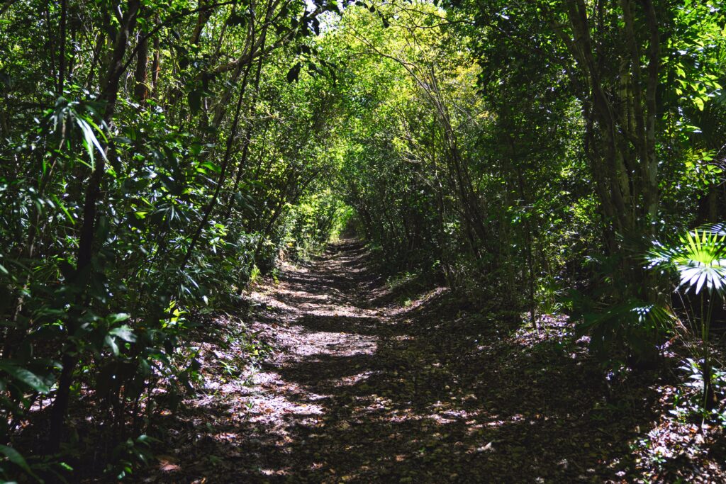 Playa Corcho is equal parts jungle hike and small quiet beach. The hike itself isn’t demanding as long as you are willing to brave slightly rough terrain and tree roots that want to trip you. At the end of the hike, you come out to a beach where you’re unlikely to see anyone else. We’ve been there a few times and only once saw a person, and he was on the hiking trail. The trail is wide at the start and then towards the end narrows and there a very short more technical part but most people will navigate it just fine. The trip will take you about 15-20 minutes at a steady pace.