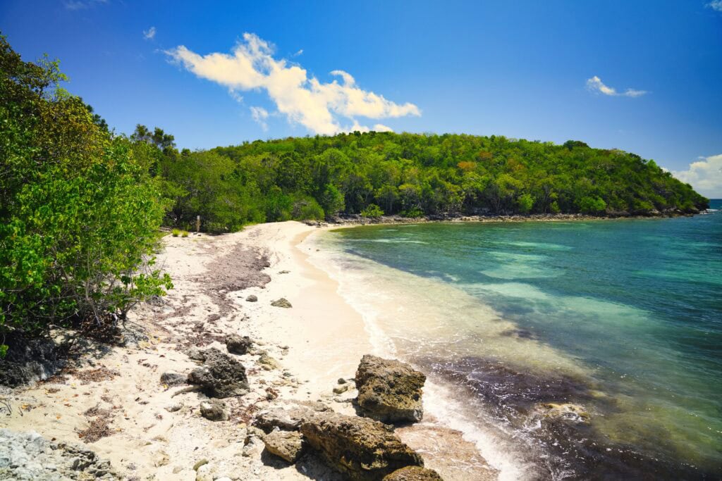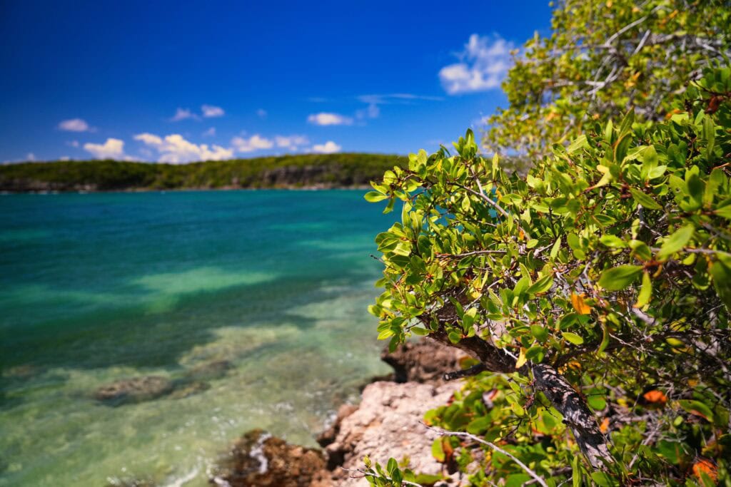 La playa se abre a Puerto Ferro, una bahía que es criadero de muchísimas especies, desde diferentes manglares hasta tiburones, delfines (el mamífero gris, no el pez verde), sábalos, etc. Con suerte, podrá ver un delfín o una tortuga jugando en la bahía. Si no, simplemente disfrute de la tranquilidad.